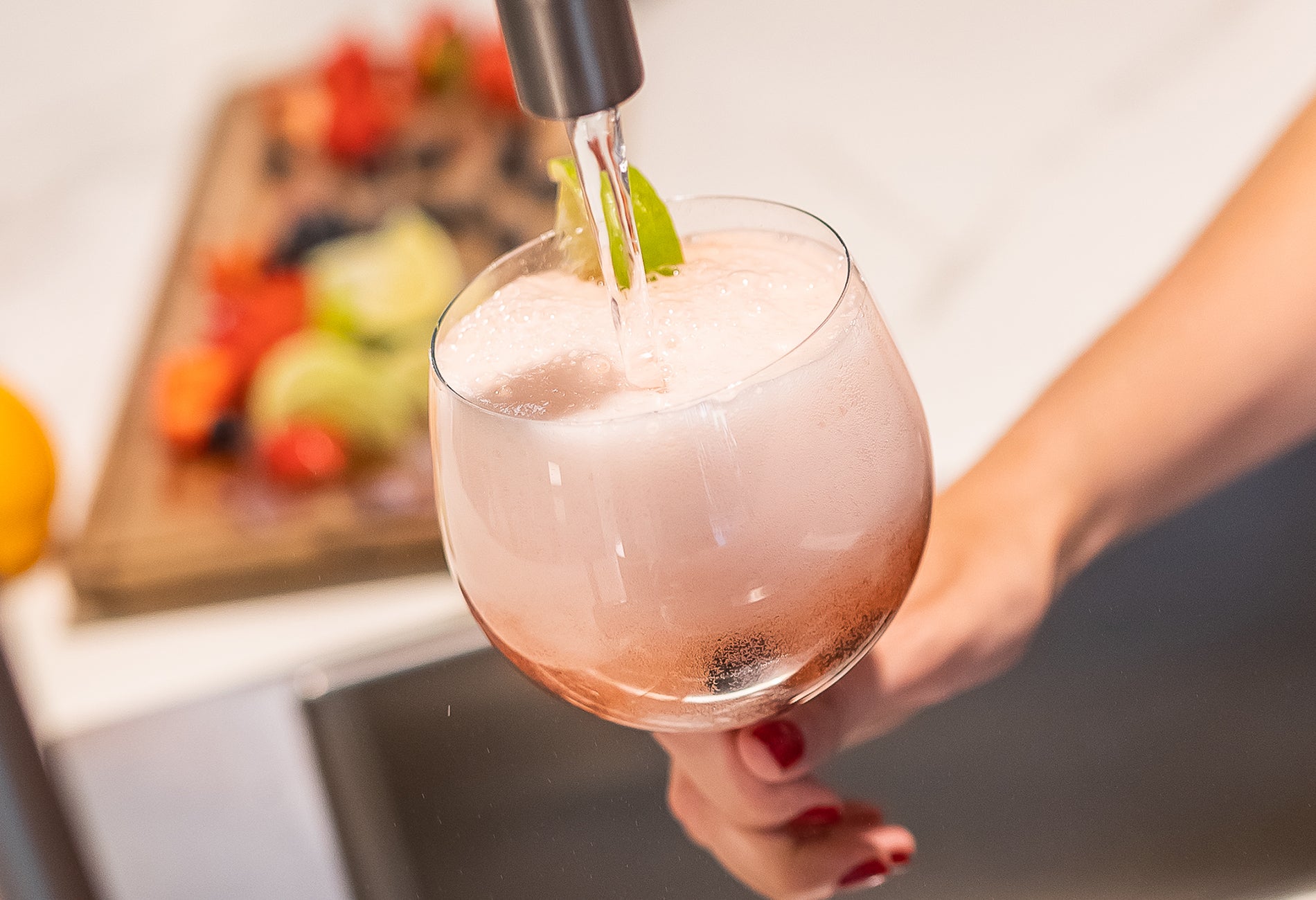 Met onze geïntegreerde Juice Bar kun je jouw favoriete smaakjes toevoegen direct vanuit de kraan. Gekoeld, Bruisend, beiden? Het is helemaal aan jou.